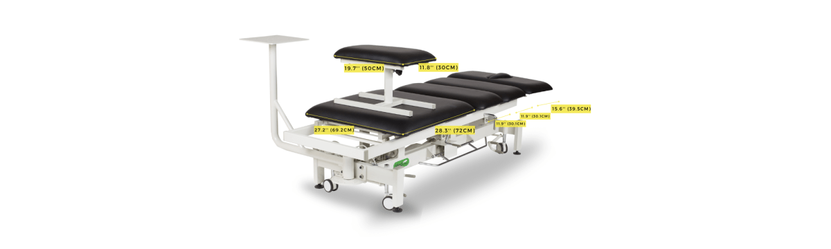 4-Section Hi-Lo Traction Table with Stool — 81.4" L × 27.2" W × 18"–38" H